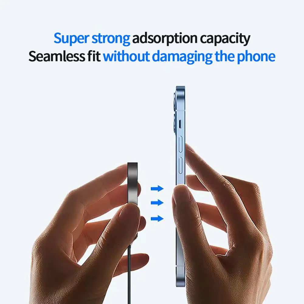 Charge your devices efficiently with the 15W Magnetic Qi Wireless Fast Charger. Designed for the latest mobile phones, this charger supports fast wireless charging for models from iPhone 12 to iPhone 16. Its compact metal construction ensures durability, while the magnetic design keeps your phone securely aligned for optimal charging performance.