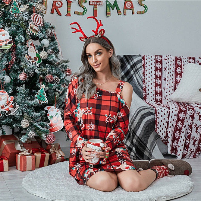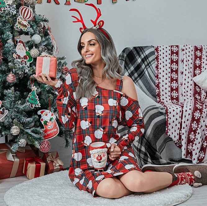 Color: red and green plaids, dark red, plaid bow, plaid deer, plaid snowman, plaid Peter Pan