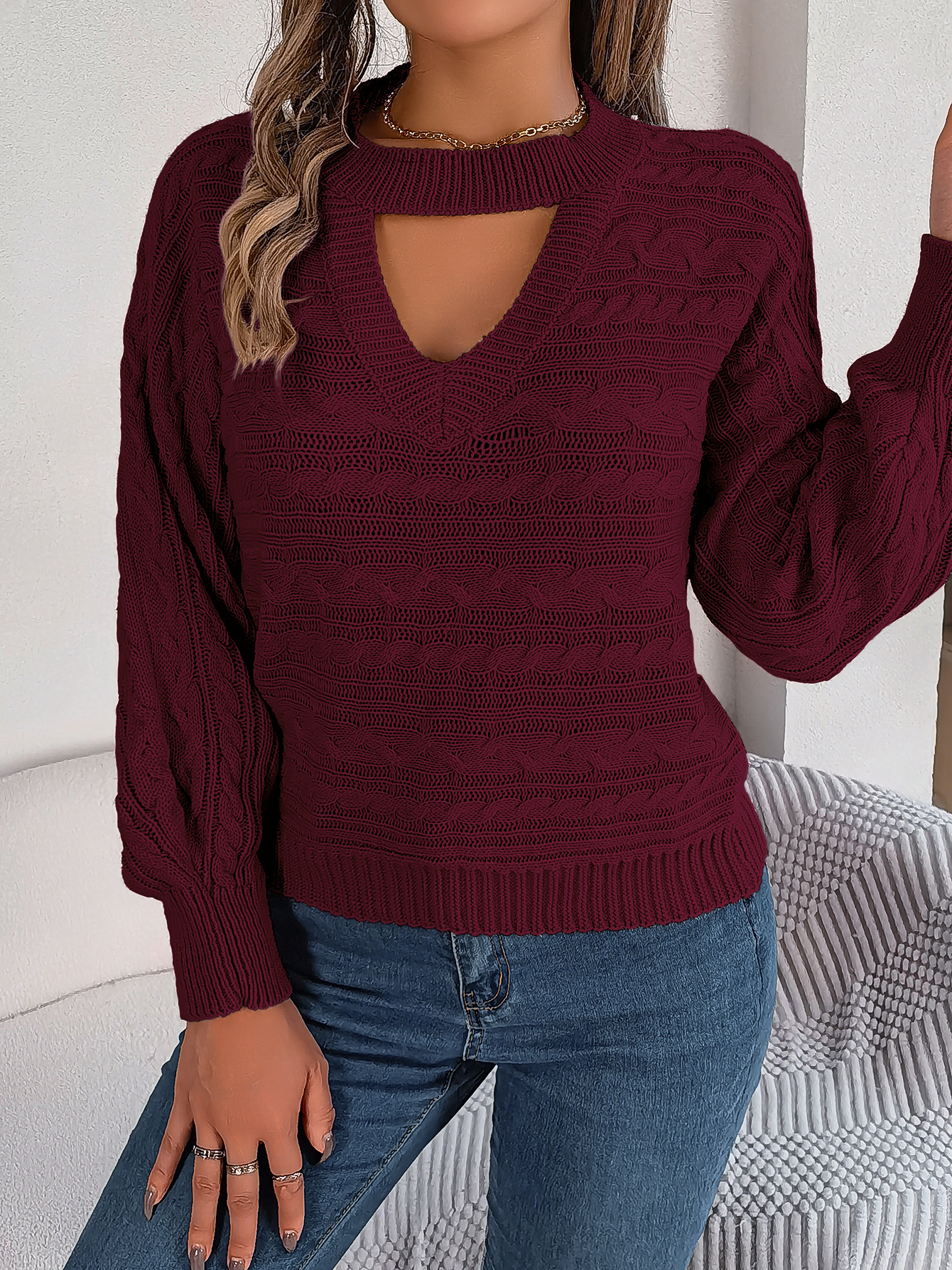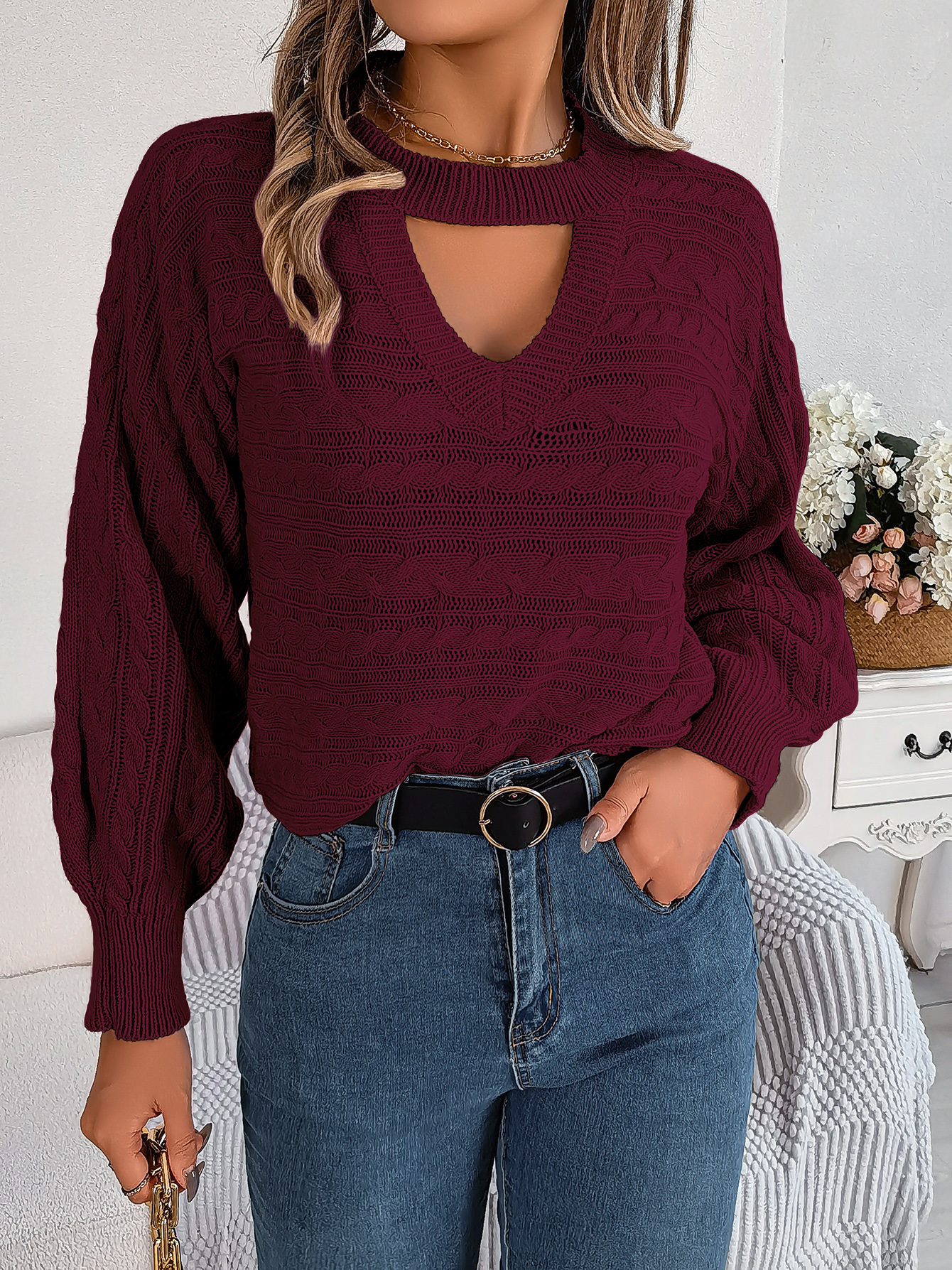 Women Casual Hollow Out Cable Knit Long Sleeve Pullover Sweater