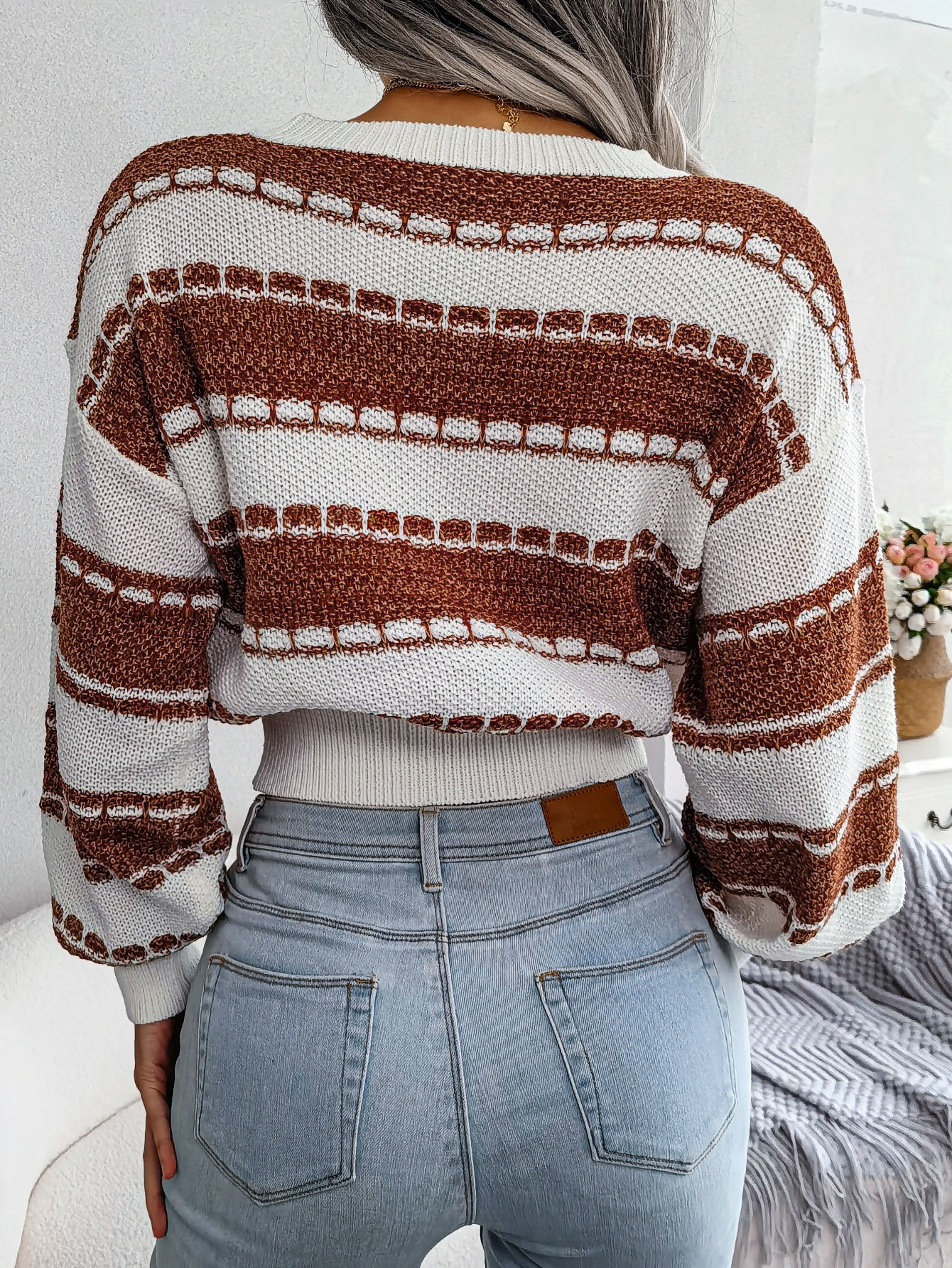 Women Fashion Color Block Long Sleeve Knit Sweater