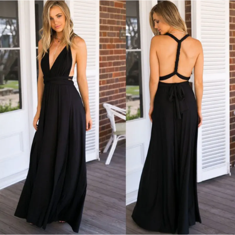 Elevate your style with this stunning floor-length, backless bandage maxi dress, perfect for parties, clubs, summer outings, and bridesmaids. Crafted with high-quality milk silk polyester fiber, this dress offers both comfort and versatility with over 15 creative ways to wear it, thanks to its extra-long straps.